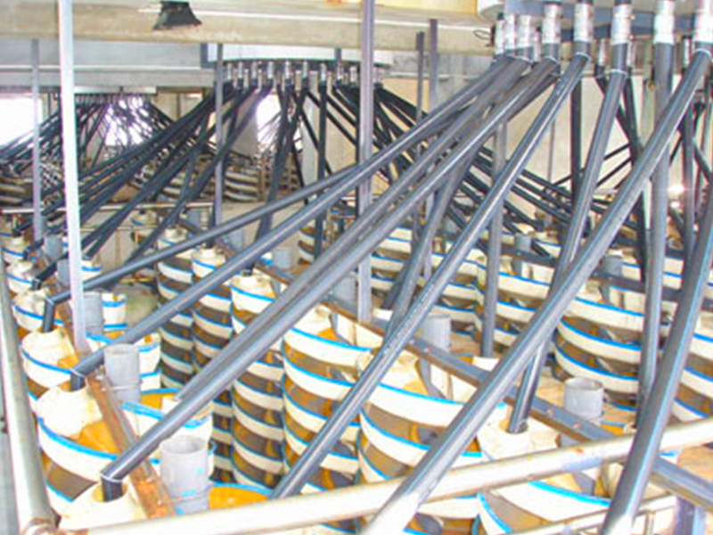 公司有玻璃鋼化工技術及制造工藝的優勢,早在1988年就研制開發了國內大直徑及新斷面特性的DL—2000型兩米直徑玻璃鋼螺旋溜槽。該設備一臺處理能力相當于40臺搖床,選別指標優良。1989年通過部級技術鑒定并獲獎,填補國內選礦設備一項空白。20多年來,公司先后開發了一系列玻璃鋼選礦新設備,使設備性能、結構參數更臻完善。就玻璃鋼螺旋溜槽φ400—φ2000各類系列產品和各種床條結構的玻璃鋼搖床而言,公司擁有國內完備的直徑與型號系列;完善的結構參數;過硬的制作質量;新穎的改進型式;可靠的設備選型方法。